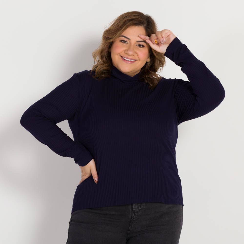 Blusa Feminina Canelada Sem Costura Patricia Foster Preto
