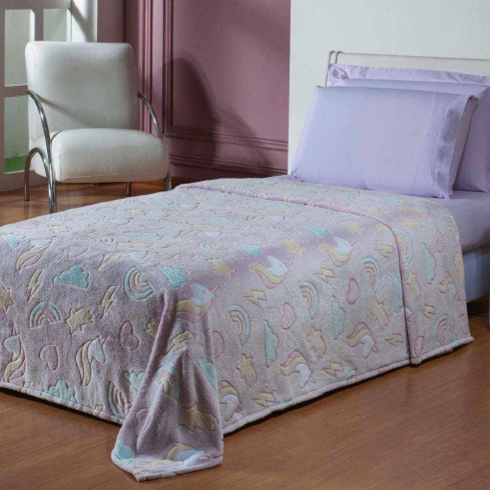Cobertor Infantil Mágico Encantos Brilha No Escuro - Rainbow Rosa Pink