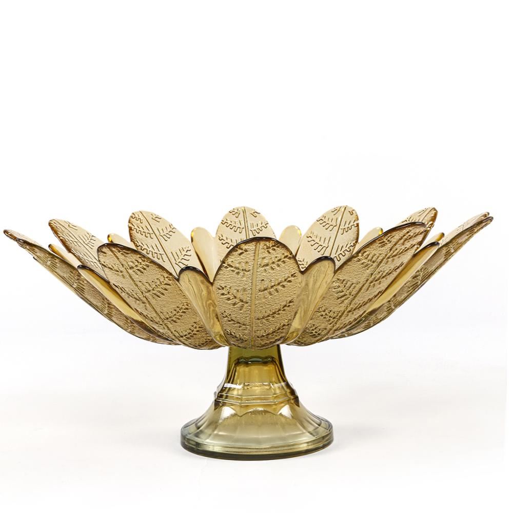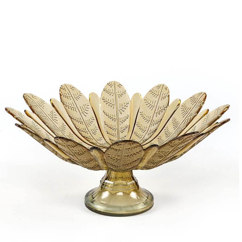 Centro De Mesa Folhas Âmbar Vitazza 39Cm - Vidro