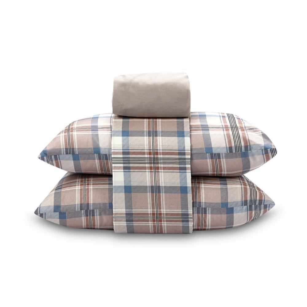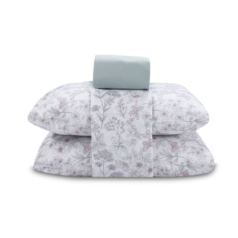 Jogo De Cama Casal Percal 200 Fios Buona Fortuna 3 Pçs - Catarina Listra Azul