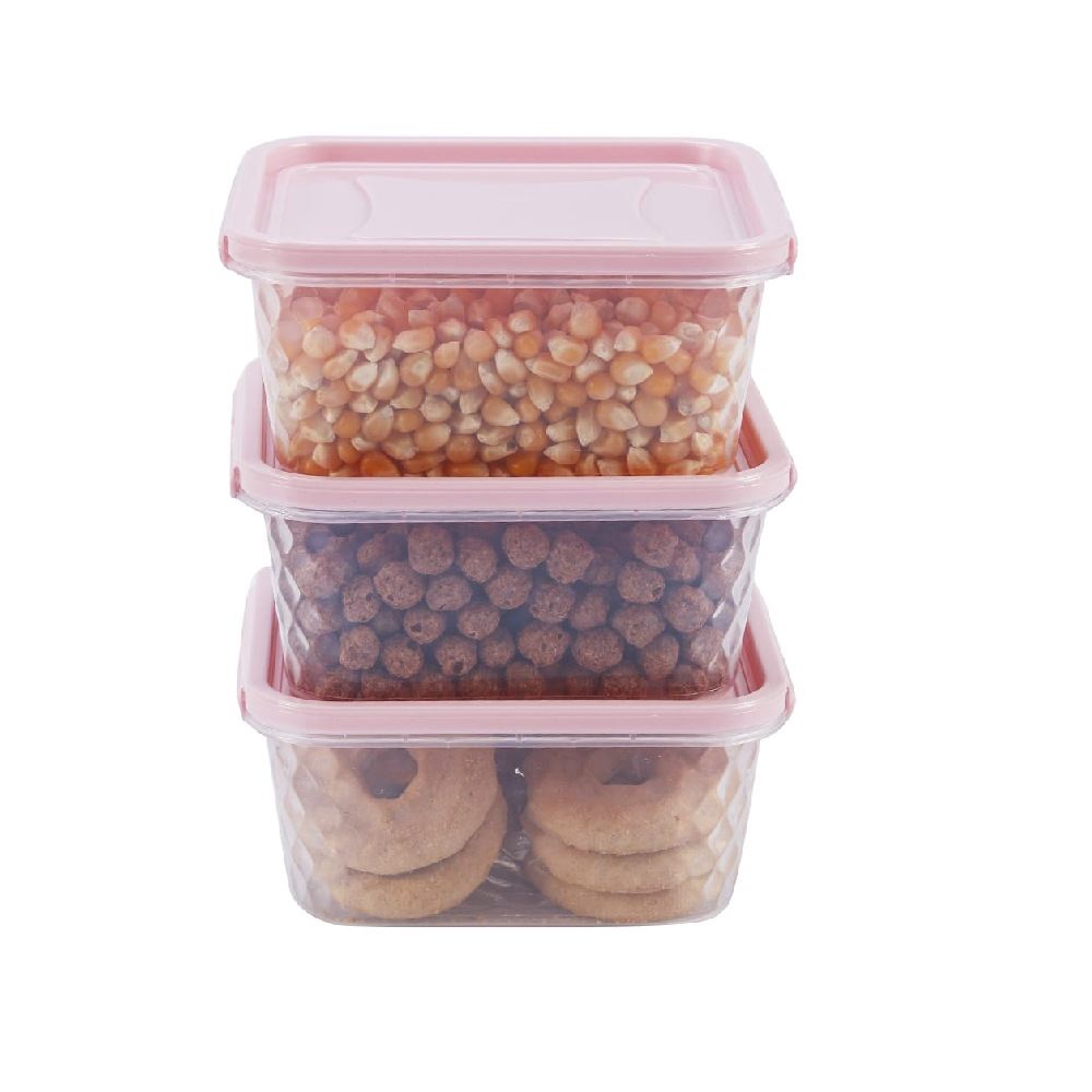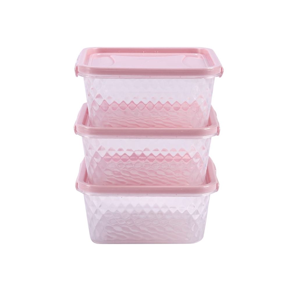 Jogo De Potes Cristal Rosa Plasvale 550 Ml - 3 Peças