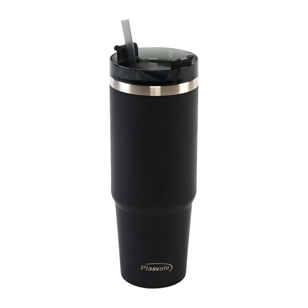 Copo Térmico Com Canudo Plasvale 900Ml - Preto