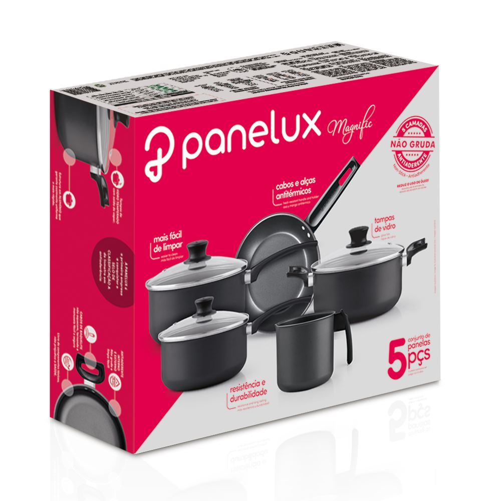 Jogo De Panelas Aluminio Antiaderente Magnific 5 Peças Panelux - Cereja